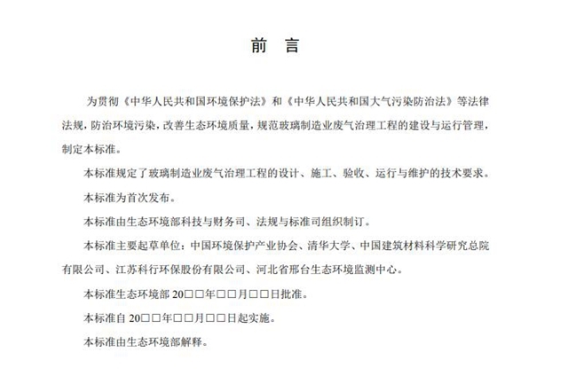 為貫徹《中華人民共和國(guó)環(huán)境保護(hù)法》,保護(hù)環(huán)境,防治環(huán)境污染,我部組織開(kāi)展了國(guó)家環(huán)境保護(hù)標(biāo)準(zhǔn)《玻璃制造業(yè)廢氣治理工程技術(shù)規(guī)范》的編制工作。